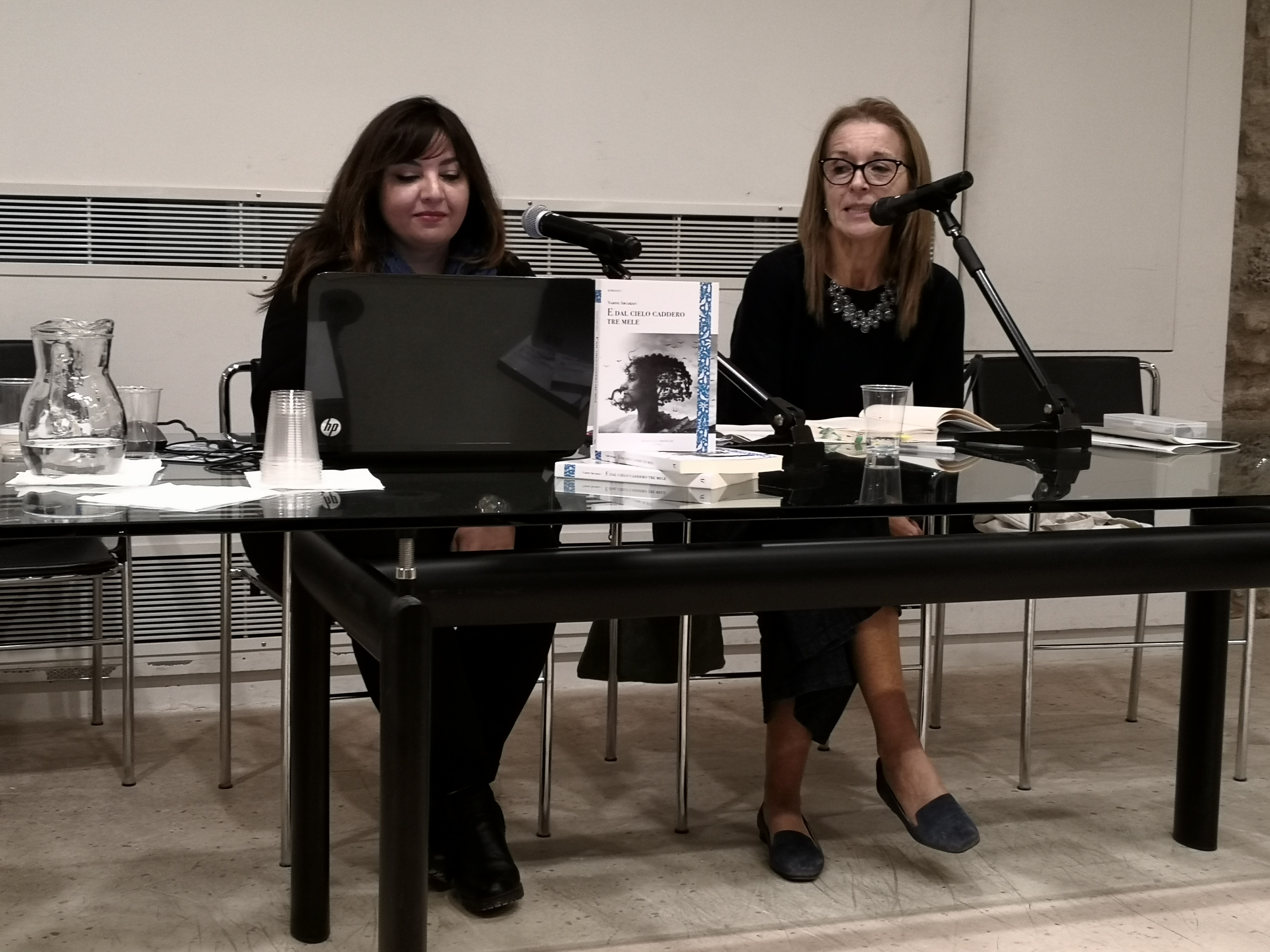 Con grande emozione, durante l’ultimo incontro della giornata, Claudia Zonghetti, intervistata da Giulia Lanciotti, ci ha raccontato del “cuore strappato e riempito di inchiostro” di Nariné Abdarjan, scrittrice armena e autrice dello splendido romanzo E dal cielo caddero tre mele. Una narrazione che non si svolge in un tempo definito e con una precisa successione temporale, ma che comunque racchiude in sé tutti i più importanti eventi di questa terra ferita da guerre e da catastrofi naturali. La stessa scrittrice, trasferitasi a Mosca per studiare e dove è rimasta per alcuni anni svolgendo mansioni molto distanti dai suoi desideri e dalle sue reali abilità, porta nell’anima i segni del pathos della perdita, della nostalgia di casa, e trova nella scrittura in russo un filtro che le permette di distillare la lingua e i sentimenti. Ne risultano uno stile pulito che dà accesso al significato originale delle parole, una scrittura accattivante nella sua semplicità, in un’atmosfera che a tratti rimanda alla fiaba.