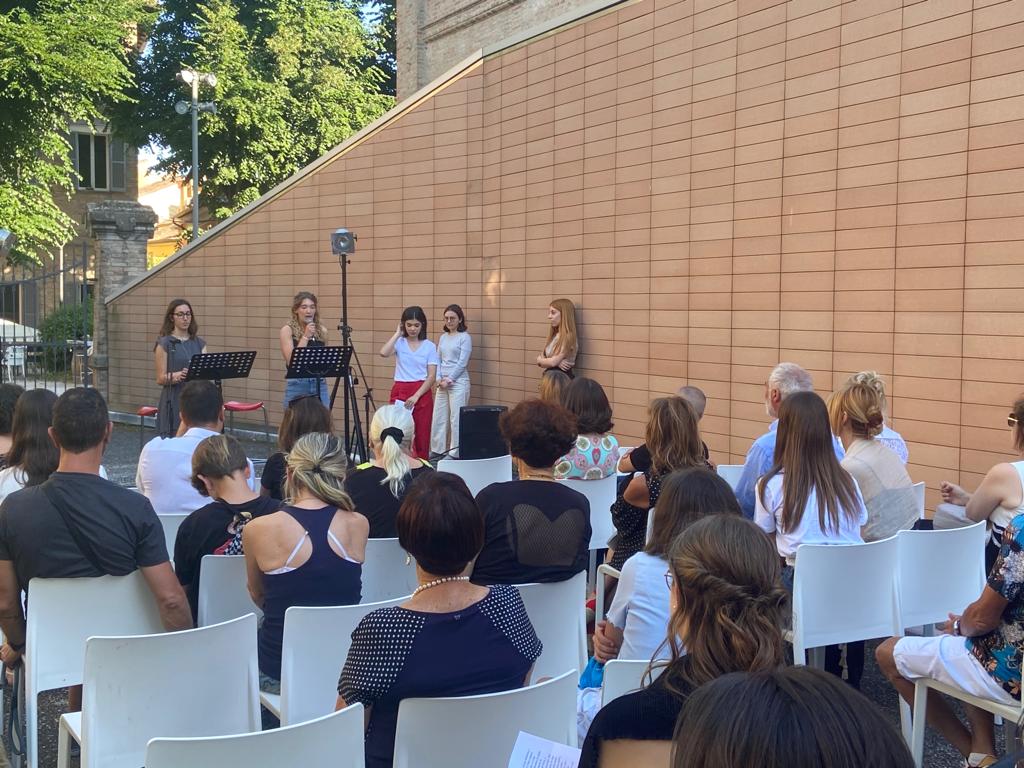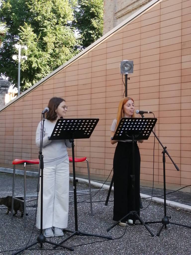 Alle 18.30, nei Giardini della Memo, Eleonora Tonelli e Bianca Belogi hanno accolto gli studenti che hanno presentato ad un folto pubblico i libri da loro scelti.
