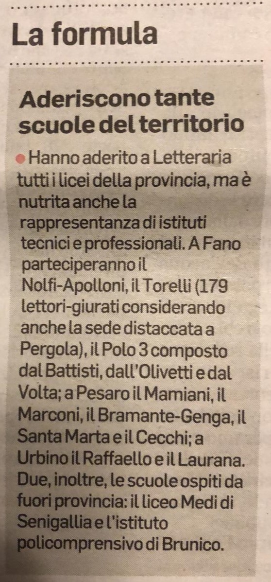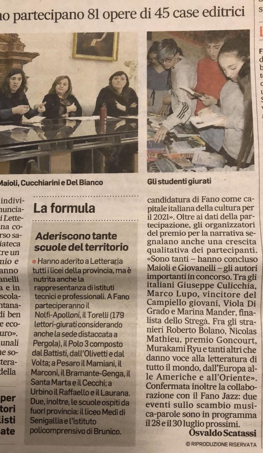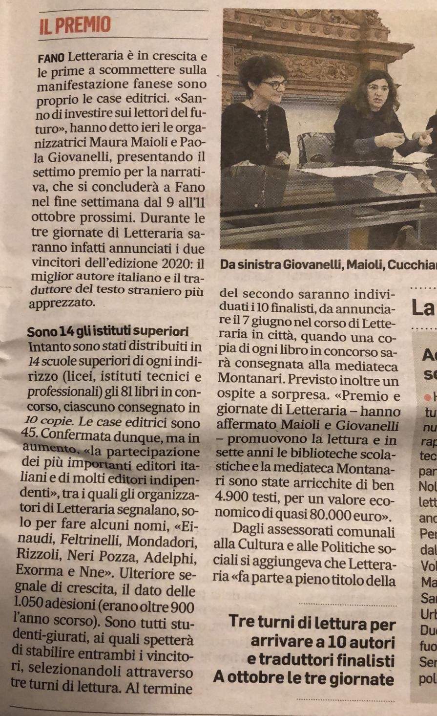 A seguito della Conferenza Stampa per la presentazione della VII Edizione di Letteraria, il Corriere Adriatico ha dedicato uno spazio al Premio.